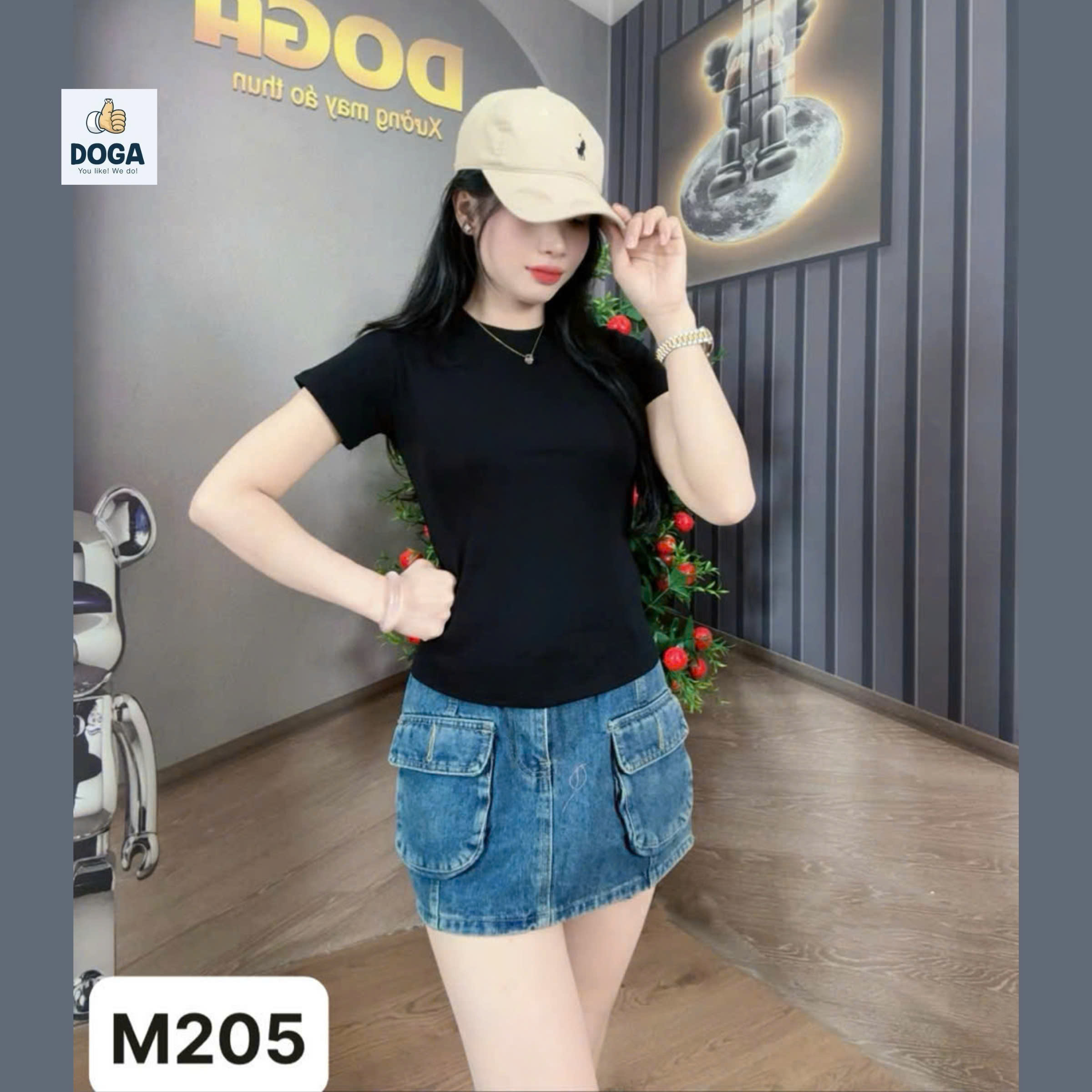 Áo thun DOGA ôm body cao cấp tôn eo tay ngắn chất COTTON BORIP mềm mịn mát,vải dày dặn, cắt lông kĩ, không nhão, không pha nilong về 10 màu M205 ĐEN