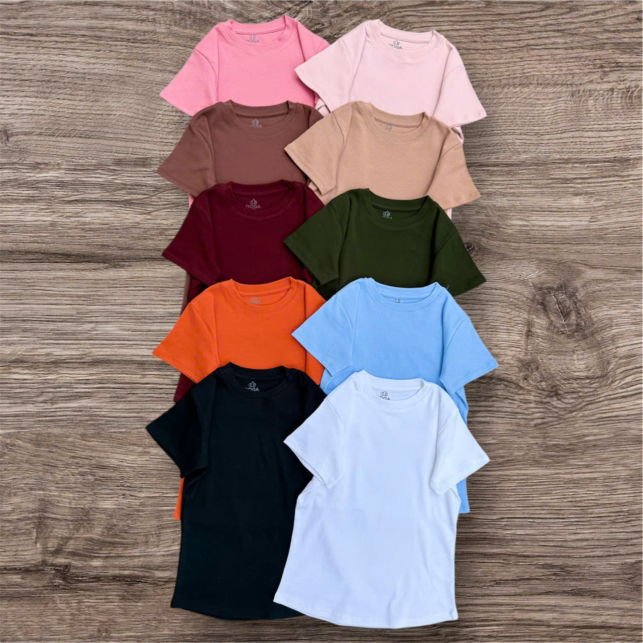 Áo thun ôm body DOGA trơn tay ngắn cao cấp, thiết kế cổ tròn với 10 màu.