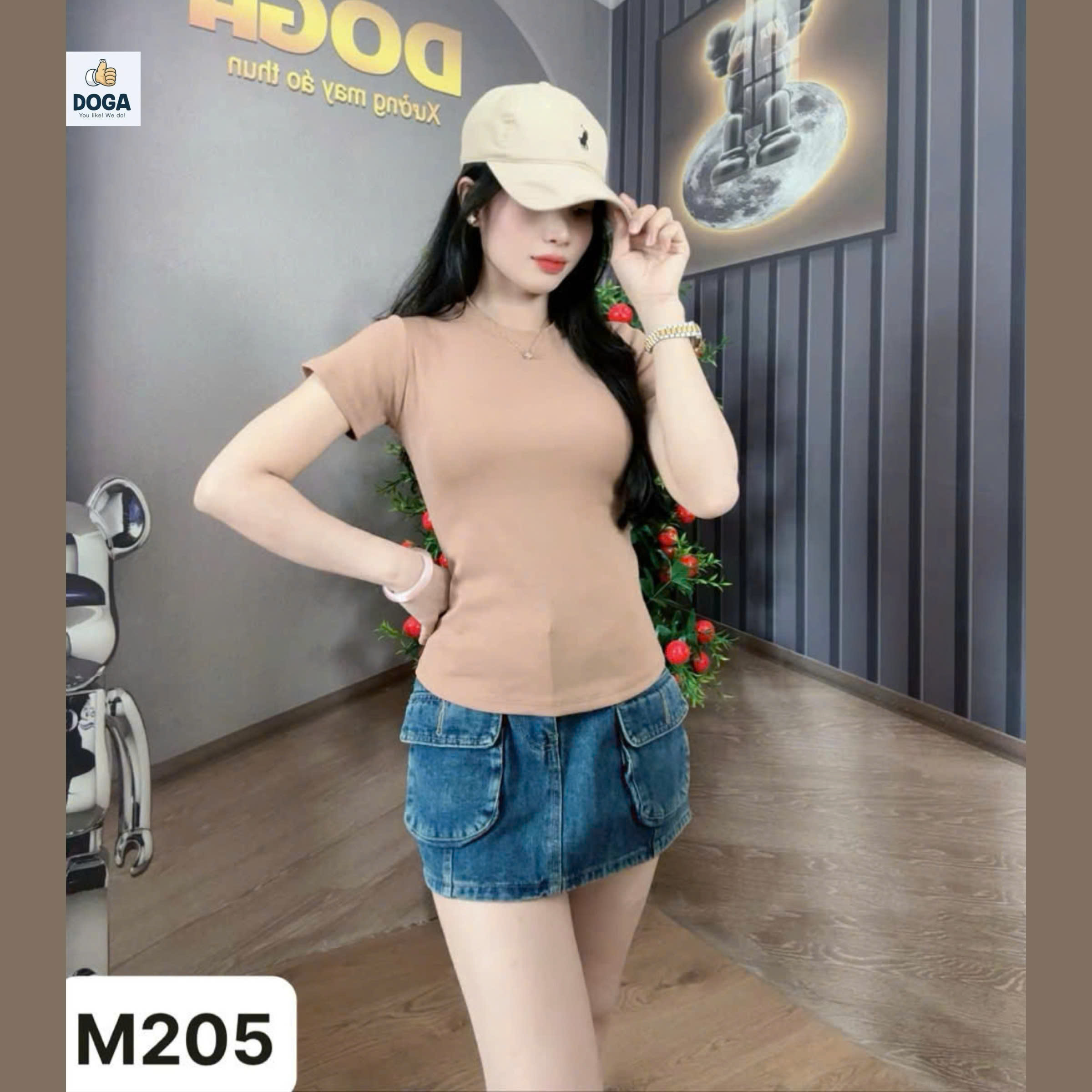 Áo thun DOGA ôm body cao cấp tôn eo tay ngắn chất COTTON BORIP mềm mịn mát,vải dày dặn, cắt lông kĩ, không nhão, không pha nilong về 10 màu M205 NÂU CACAO