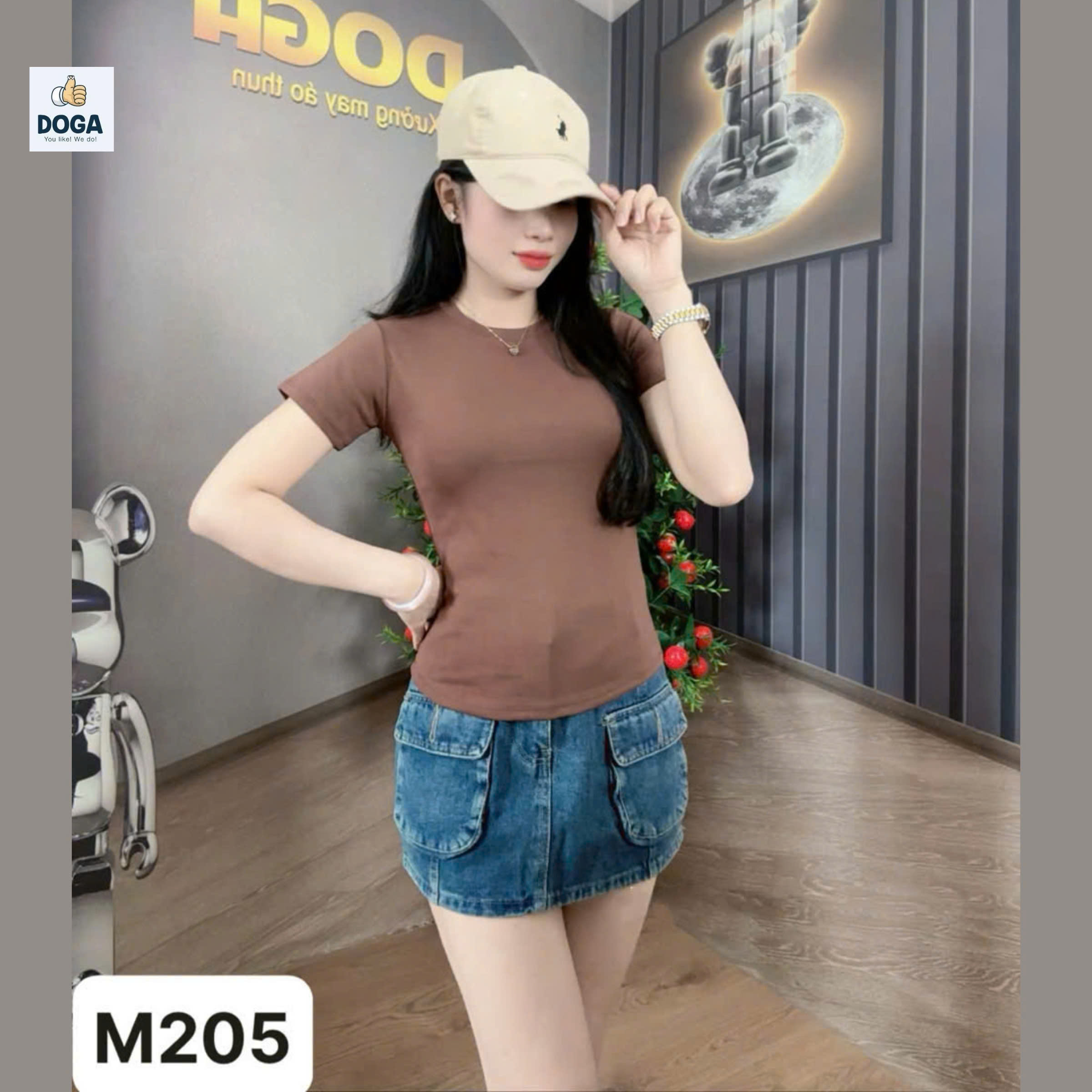 Áo thun DOGA ôm body cao cấp tôn eo tay ngắn chất COTTON BORIP mềm mịn mát,vải dày dặn, cắt lông kĩ, không nhão, không pha nilong về 10 màu M205 NÂU ĐẤT